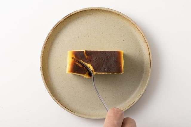 食べ応えがありそうな見た目ですが、口に入れると滑らかで軽い食感に変わり、しっかりとしたたまご感とクリームチーズのミルキーな味わいが広がります。食べたら止まらない、やみつきになるバスクチーズケーキです。